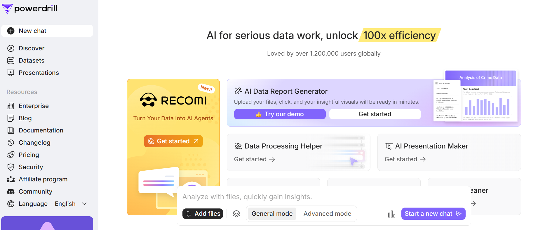 Powerdrill AI是一款只需用自然语言下达指令即可生成图表的高功能工具。其魅力在于除了简单的柱状图和饼状图外,还能实现模式、趋势及洞察的可视化,甚至支持预测分析。该工具不仅能通过丰富的图表类型可视化数据,还可以帮助分析数据并挖掘其意义。它的基本功能可免费使用,可以先轻松尝试。