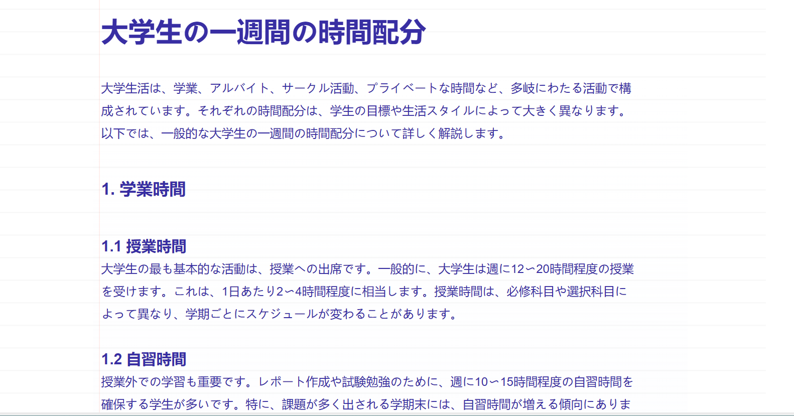 例如,本次以“大学生一周的时间分配”为主题,由AI生成文本内容。