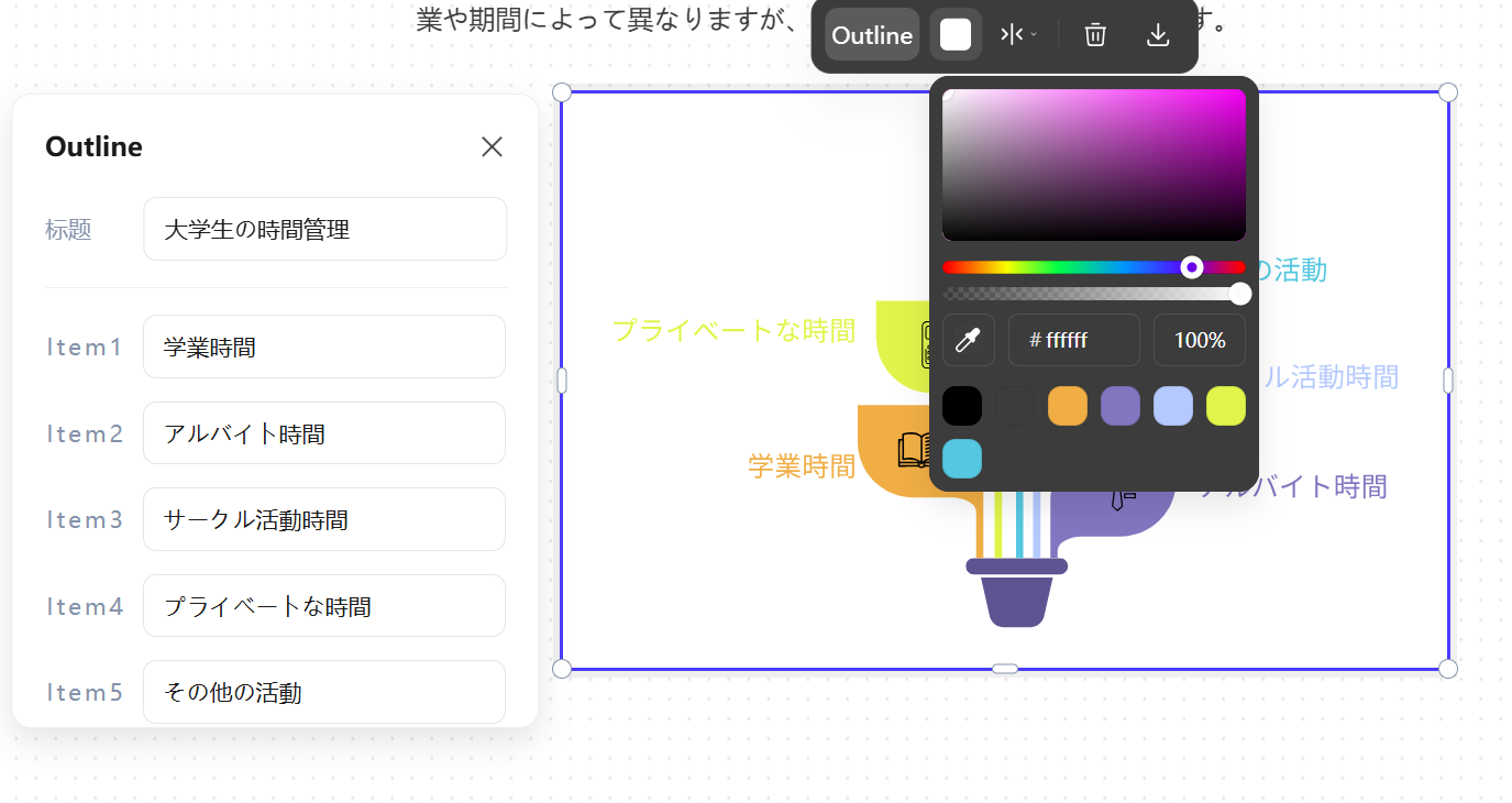 生成的图表可以直接使用,当然也可以进行编辑。通过直观的操作,可调整颜色、文本字体和大小、修改轮廓等,从而实现个性化定制。这样就能根据个人喜好或品牌色调进行调整。